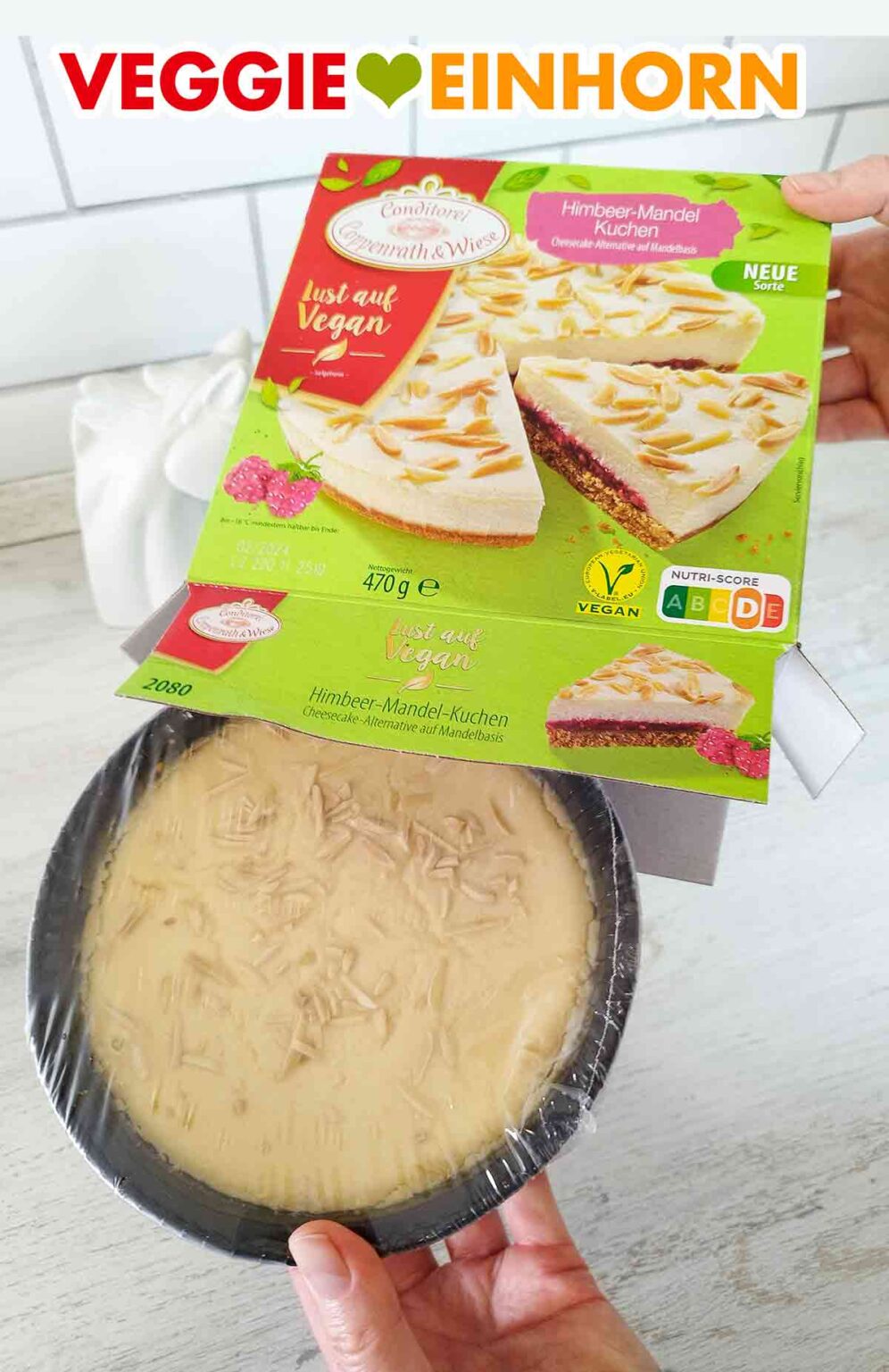 Der vegane Himbeer-Mandel-Kuchen wird von Coppenrath & Wiese hergestellt. Conditorei Coppenrath & Wiese KG. Hansastraße 10. 49497 Mettingen. Webseite: coppenrath-wiese.de. Telefon: 054 52/910-. Email: info@coppenrath-wiese.de. Vegane Produkte von Coppenrath & Wiese. Vegane Backwaren.