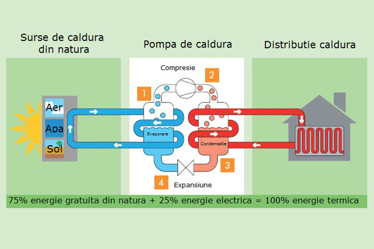 Pompele de caldura aer-apa utilizeaza sursele din mediul inconjurator al locuintei (aer, apa, sol) ca sursa de caldura. Acestea sunt proiectate pentru a furniza caldura intr-un mod eficient, scazand costurile drastic. Pompele de caldura aer-apa reprezinta o solutie excelenta atat pentru cladiri noi cat si in cazul renovarii celor existente.