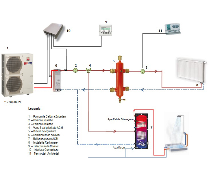 Încălzire. Pompele de căldură extrag căldura din aerul exterior, ceea ce face ca încălzirea locuinței să fie un proces eficient din punct de vedere energetic. Apă caldă. Combinația dintre o pompă de căldură și un rezervor de apă caldă menajeră produce suficientă apă caldă * la eficientă ridicată, pentru tine și familia ta. Răcire.