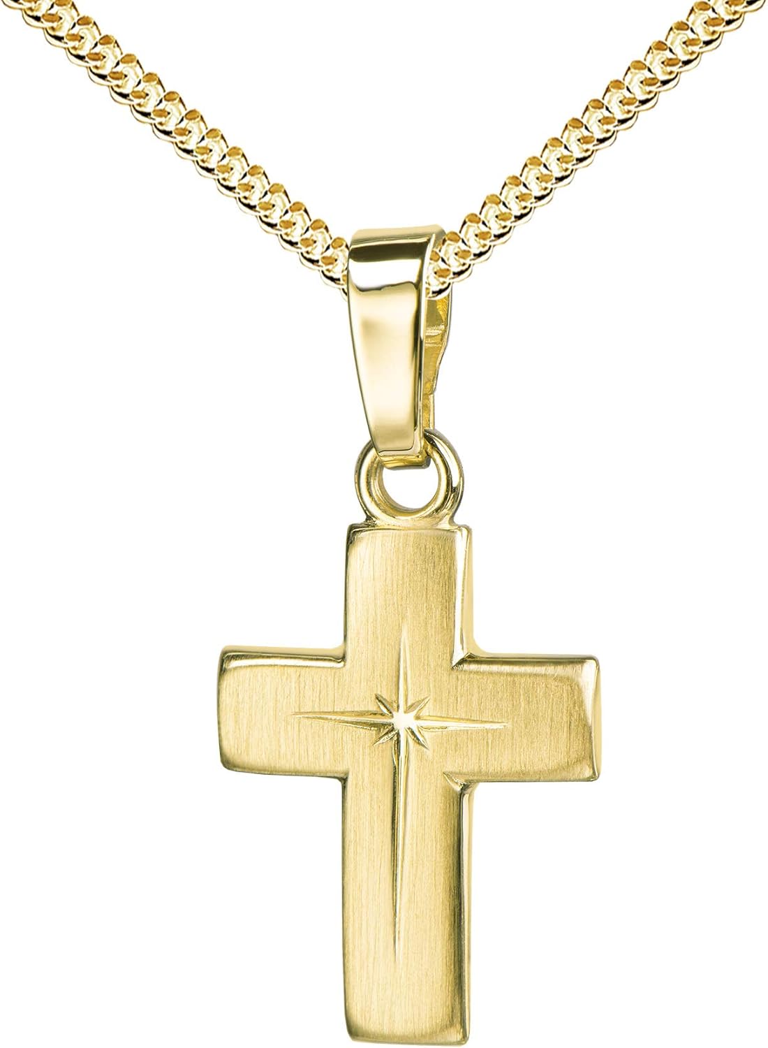 Goldkreuz KreuzAnhänger für Damen, Herren und Kinder mattiertes Kreuz mit strahlenförmiger