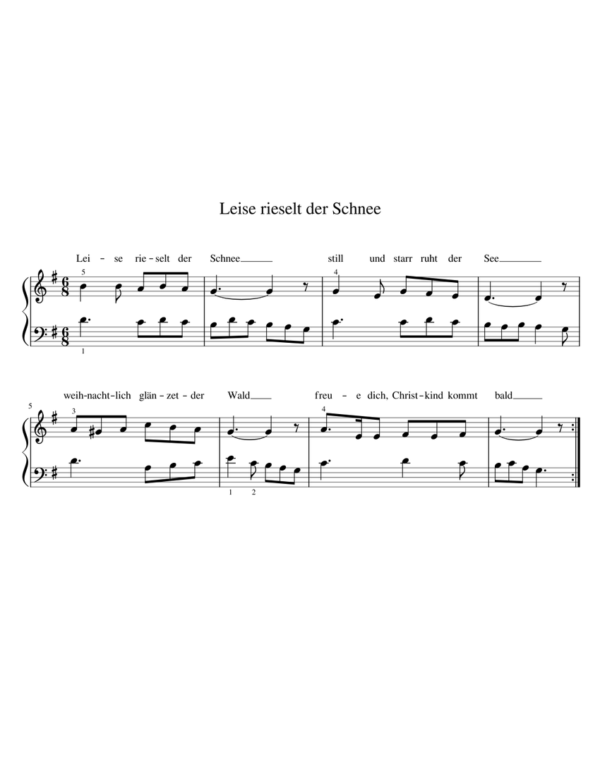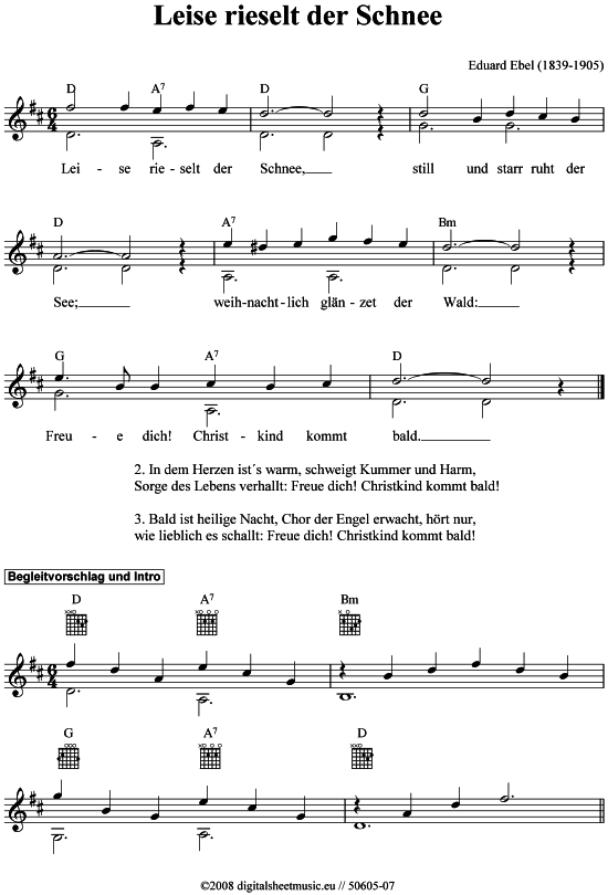 Leise rieselt der Schnee: Kostenloses Notenblatt mit Gitarrenakkorden und Liedtext im PDF-Format. Ausdrucken oder Speichern im Frame möglich. Bei langsamen Internetverbindungen kann die Anzeige der Datei etwas dauern. Zurück. Hinweis: Diese Seite stellt eine Basisinformation dar. Sie wird routinemäßig aktualisiert.