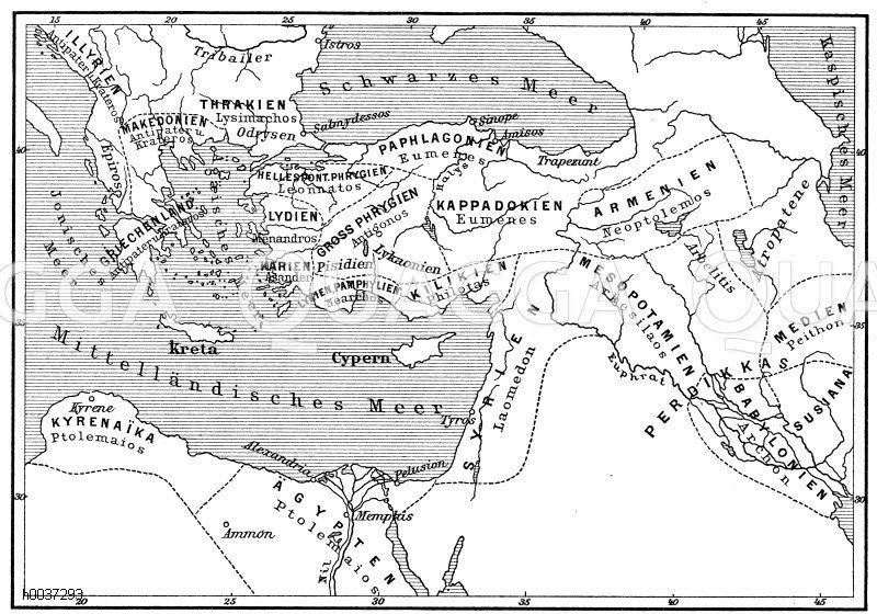 Übersichtskarte der ersten Teilung des Reiches Alexanders des Großen Quagga Illustrations