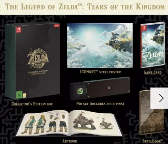 First up, Nintendo revealed The Legend of Zelda: Tears of the Kingdom Collector's Edition. This bundle features the physical version of the game, an artbook with concept art, a steelbook case, an Iconart steel poster, and a set of four pin badges. This Collector's Edition will launch alongside The Legend of Zelda: Tears of the Kingdom and.