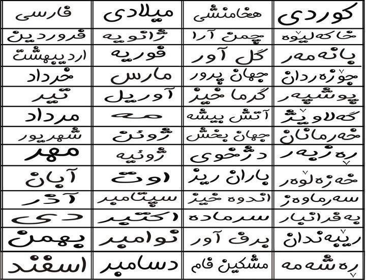 ترتیب ماههای میلادی و معادل آن به شمسی